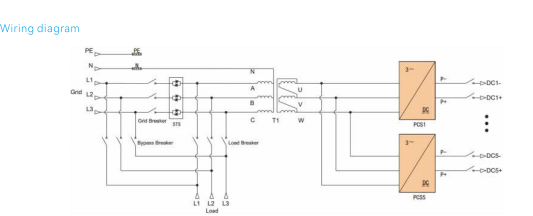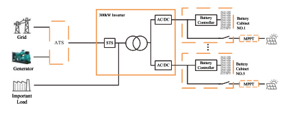 Fitur Sistem kasebut nggunakake unit inverter modular ing konfigurasi paralel, ing endi Saben input DC Modul Inverter cocog karo kabinet baterei khusus, Ngaktifake manajemen saben klompok kanggo ngilangi arus sirkulasi ing antarane senar baterei. Modul Daya AC / DC ndhukung penyebaran sing fleksibel kanthi jumlah lan Rating daya, kanthi kapasitas maksimal modul 60kw ing 5-unit paralel Konfigurasi. Output AC saka modul Daya dikirim liwat transformer Tahap output terisolasi, nyediakake kekuwatan kanggo beban kanthi resistansi kuwat kanggo kaget saiki. HYBRID ESTS MENGGUNAKAN INCHINASI FOTOVOLTIK DC-GOLONG, entuk dhuwur Efisien Konversi Energifikasi lan Optimized kanggo Skenario Off-Grid kanthi PV Generasi Kaluwih Generasi Mupal; Kontrol MPPT sing direncanakake ruangan Nyintegrasi fungsi combiner lan MPPT dadi kurungan sing atos. Sistem Lengkap kalebu pilihan ATS Generator Diesel, Sato 300kw Inverter, Controller PV MPPT, lan sistem panyimpenan energi.